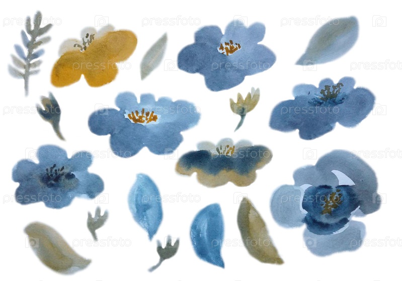 Набор акварельных красок. серо-желтые клипарты, изолированные на белом фоне