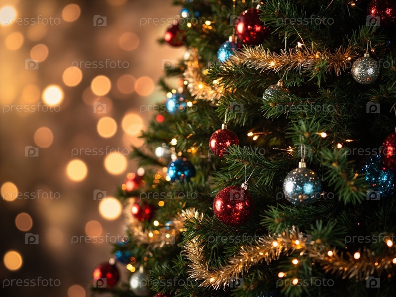 Многоцветные рождественские шары на елке