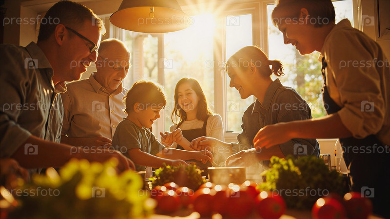 Семья готовит еду вместе