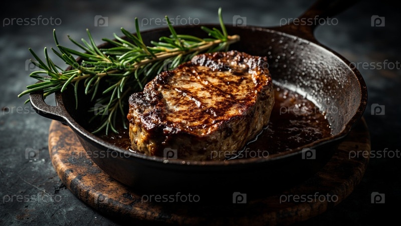 Сочный стейк с розмарином в чугунной сковороде
