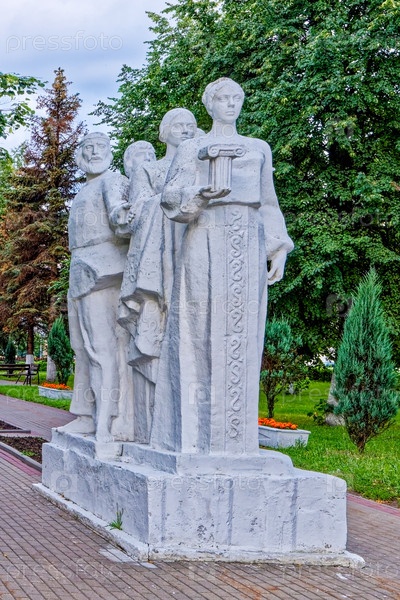 Скульптурная композиция, посвященная основанию Павловского Посада, 1973. скульптор Климачев Владимир Семенович. Московская область, Павловский Посад, площадь Революции