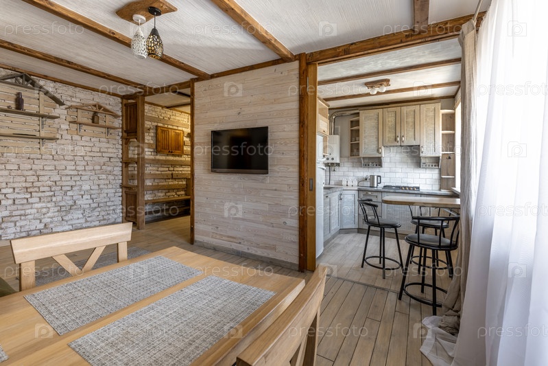 Уютный роскошный интерьер квартир с кухней и столовой