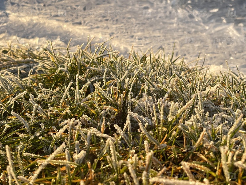 Замороженная трава возле замерзшей реки