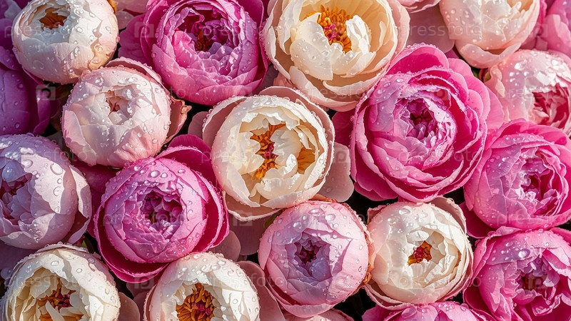 Розовые и сливочные пионы для праздничного фона