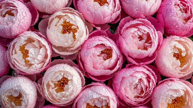 Цветущие почки розовых и сливочных пионов