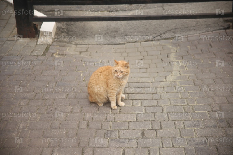 Красный кот сидит на улице