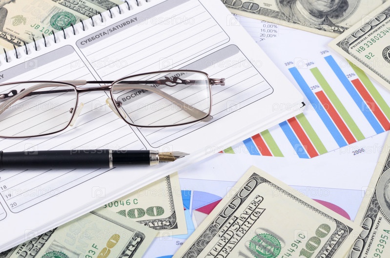 Банкноты долларов с диаграммой