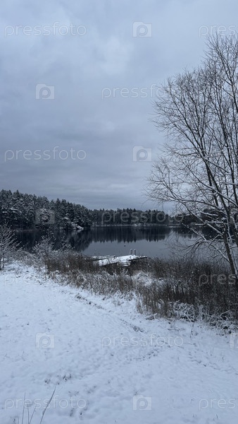 Зимний пейзаж в замерзшем озере