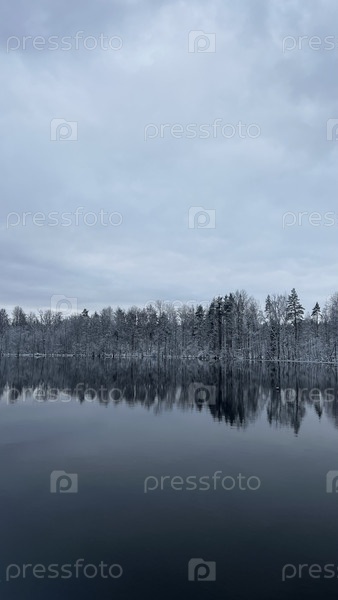 Зимний лес в Тихоокеанском озере