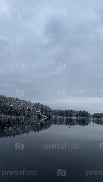 Зимний лес у спокойного озера