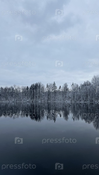 Зимний лес у спокойной воды