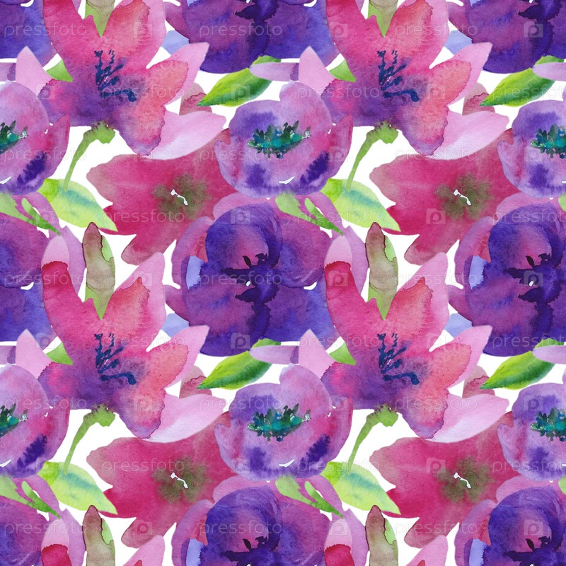 Бесшовный квадратный рисунок из розовых и фиолетовых цветов на белом фоне. иллюстрация, нарисованная акварелью вручную