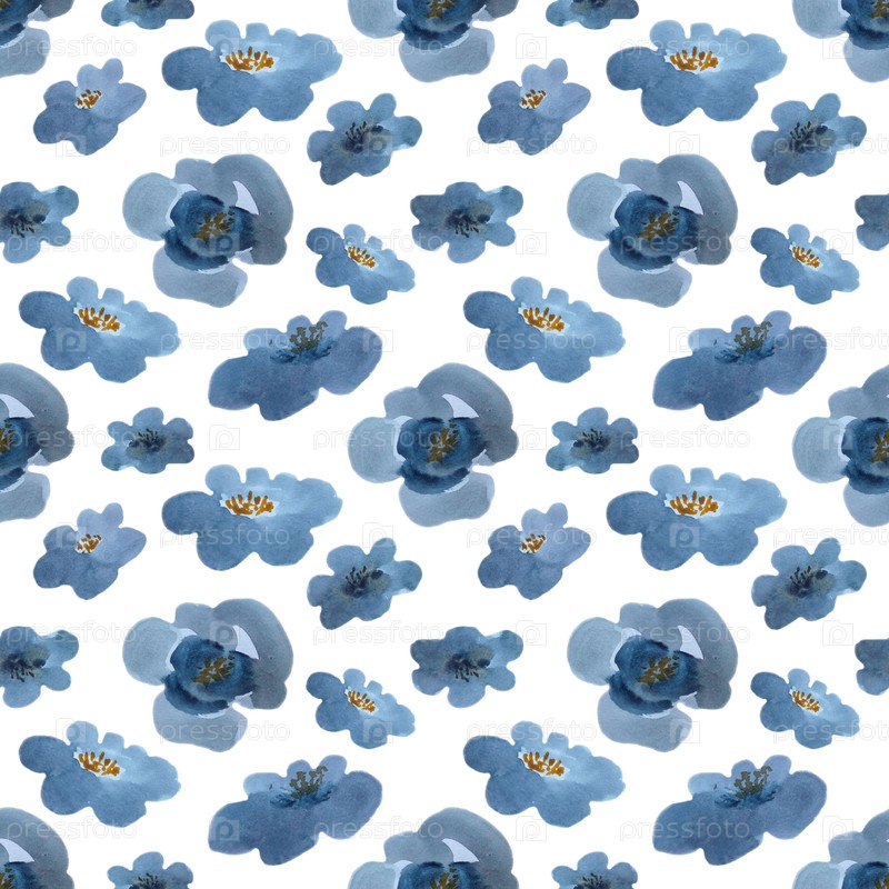 Бесшовный цветочный рисунок с цветами на белом фоне. седые и голубые цветы окрашены вручную акварелью. может использоваться для ткани, обоев, упаковки, покрытия, открыток, обоев