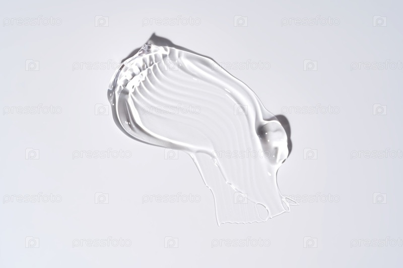 Чистый прозрачный косметический гель на белом фоне, текстура глицерина для ухода за кожей