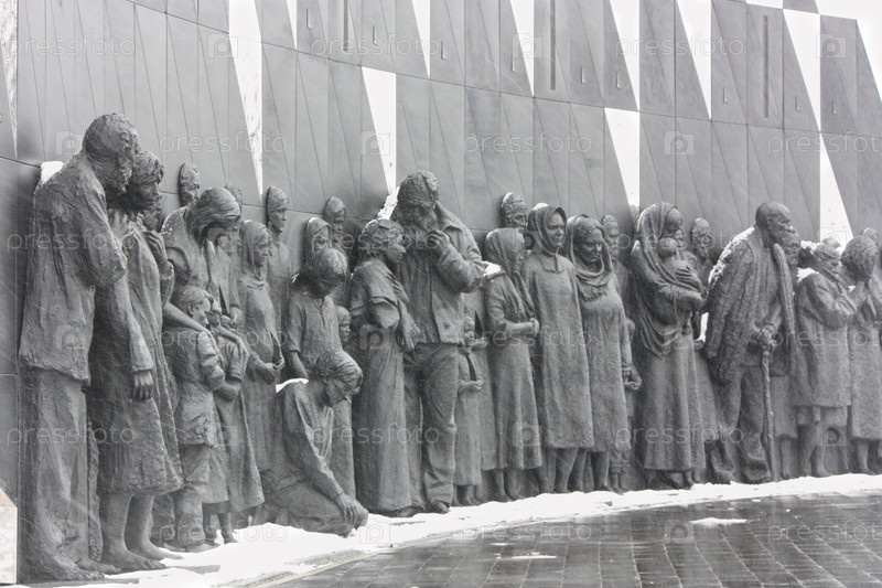 Скульптурная композиция вокруг стелы памятника гражданским лицам СССР - жертвам геноцида Второй мировой войны