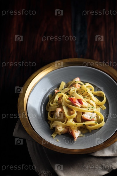 Таглиателле с морепродуктами в сливочном соусе на элегантной плите