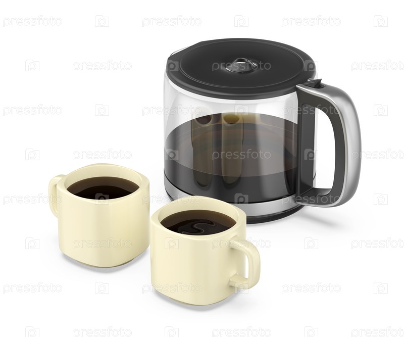 Кофейные чашки и стеклянный кувшин с фильтрованным кофе