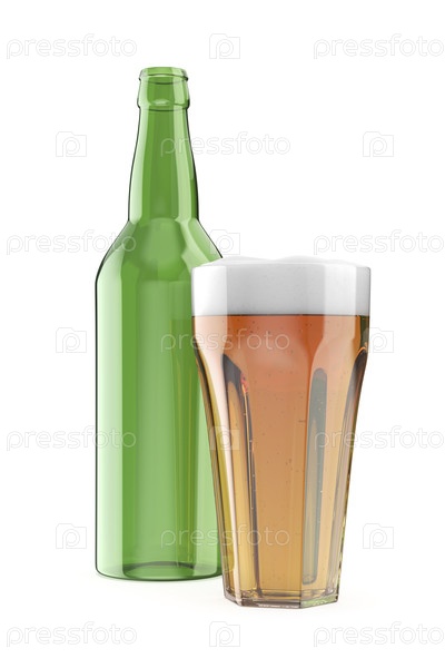 Стакан пива перед пустой зеленой бутылкой