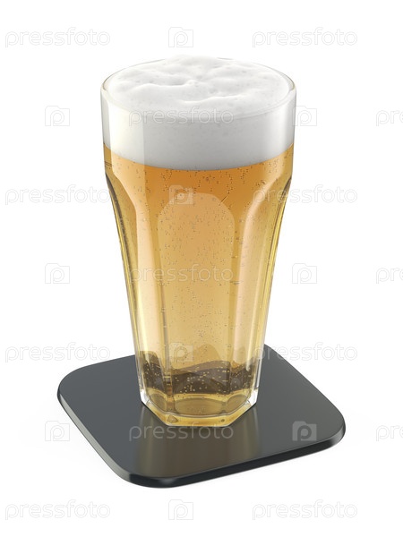 Лагерный стакан пива на блестящих черных стойках