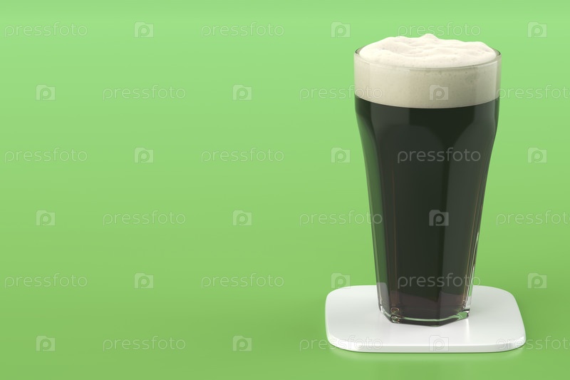 Стакан темного пива на белых стойках