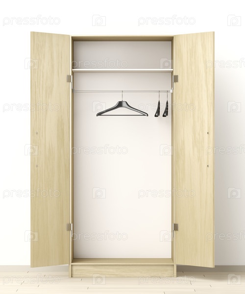 Передний вид на пустой гардероб