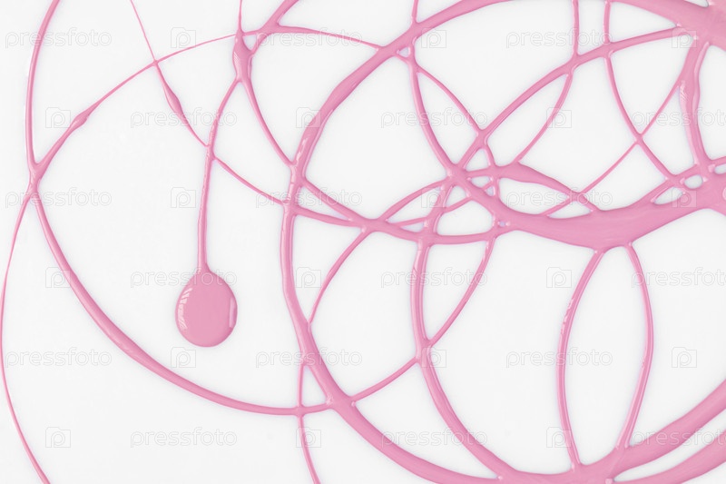 Мягкие круглые линии розовой акриловой краски на белой поверхности. большая капля в центре картины. Простота дизайна. Вид сверху. Современный стиль