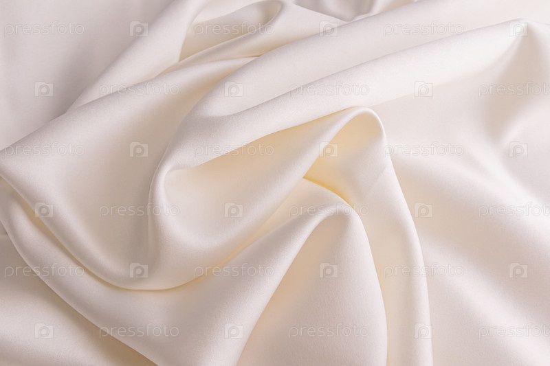 Элегантные мягкие волны атласной ткани в креме, шампанском, изысканный деликатный материал, текстура. свадебная концепция. праздничный фон. макет для дизайна