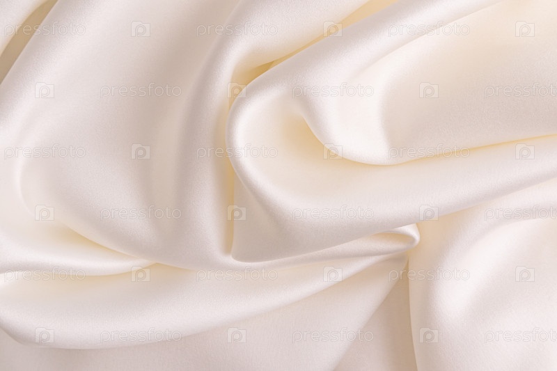 Роскошный свадебный текстиль из нежной ткани кремового цвета. Мягкие волны атласной ткани. Элегантная текстура бежевой ткани. Дизайн. Свадебное понятие