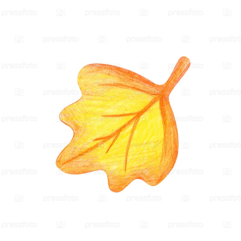 Одинокий осенний лист, нарисованный карандашом. Рисуй цветными карандашами. Падающий кленовый листок изолирован на белом фоне. Рисунок ребенка. клипарт
