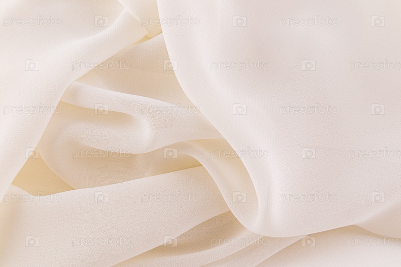 Элегантный бежевый шифон. Легкие по воздуху складки кремового шелка, драпировочный материал. Планирование дизайна. Свадебный фон