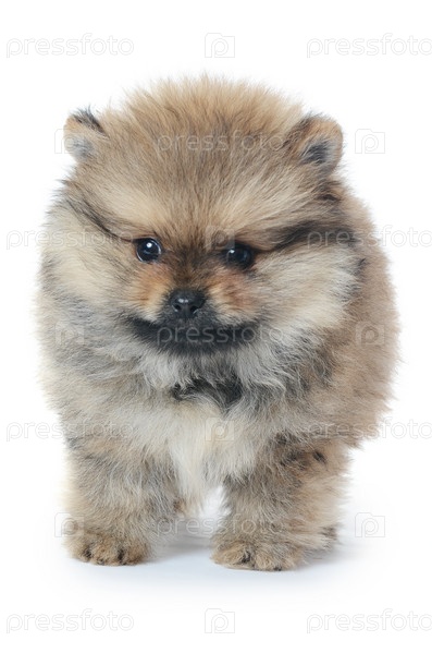 Щенок шпица, изолированный на белом фоне