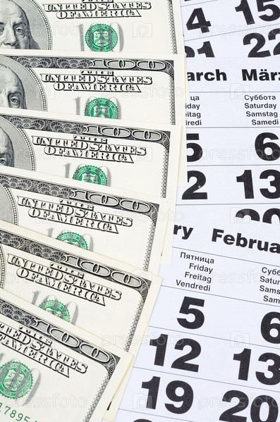 Банкноты долларов и листы календаря