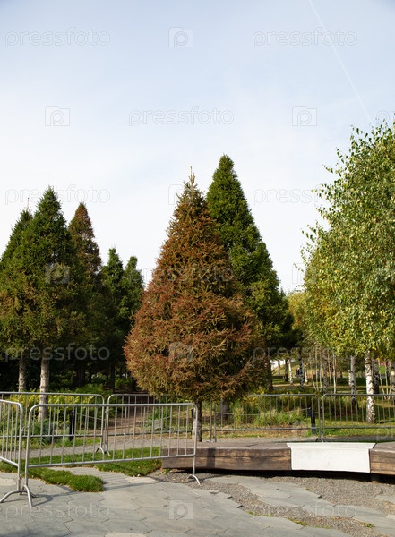Красивая плиточная тропа в парке Зарядье в Москве летом