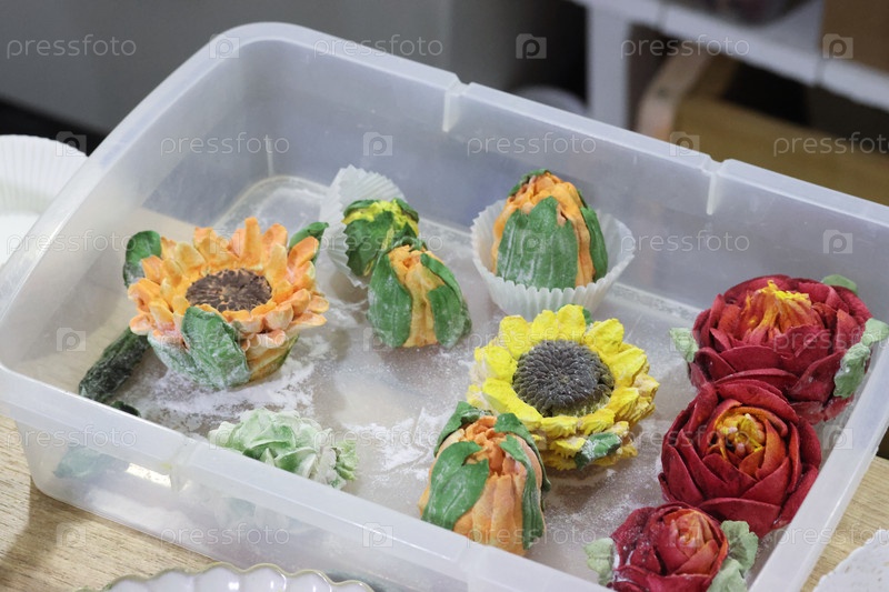 Цветы зефира в контейнере, подсолнечник зефира, тюльпаны и розы, домашний зефир