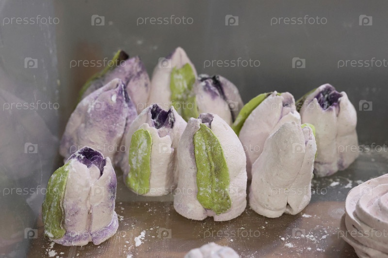 Цветы зефира в контейнере, тюльпаны зефира, домашний зефир