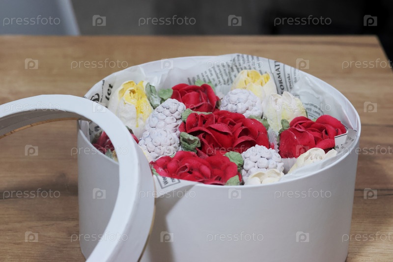 Маршмелоу в коробке для шляп, маршмелоу тюльпаны и розы, домашний маршмелоу