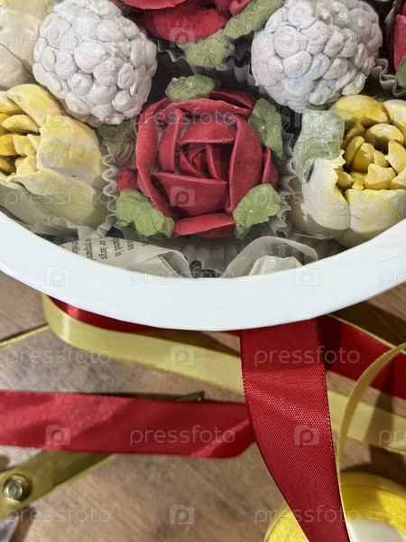 Коробка для шляп с домашним зефиром, розами и тюльпанами Маршмелоу, Близкий снимок