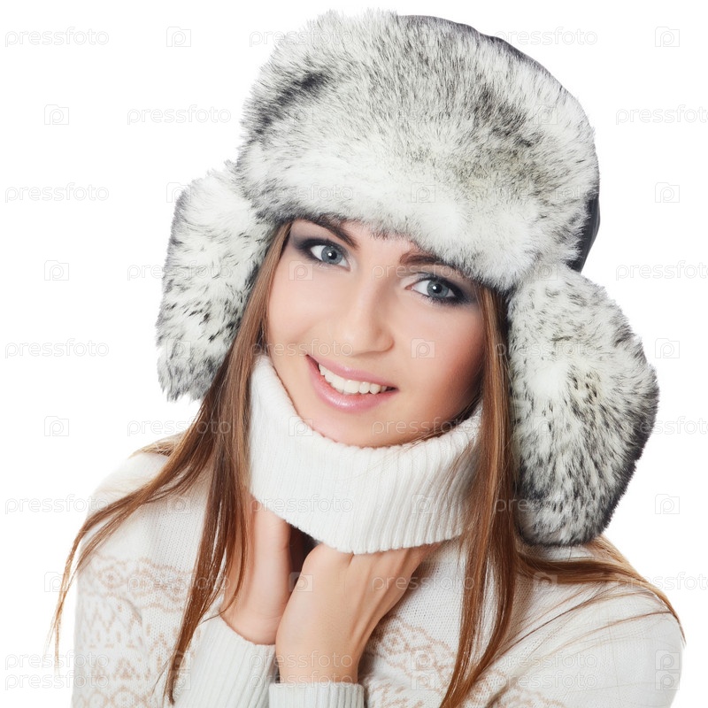 Красивая девушка в шапке на белом фоне