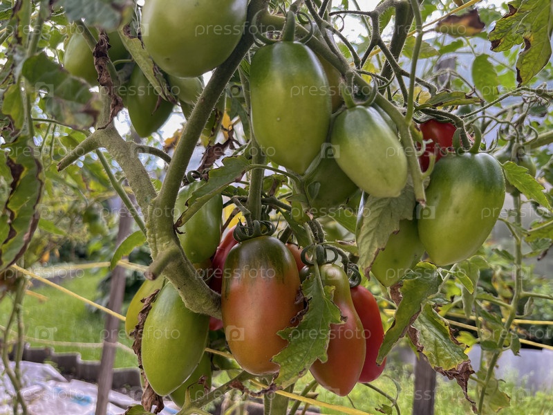 Помидоры созревают в саду под открытым небом
