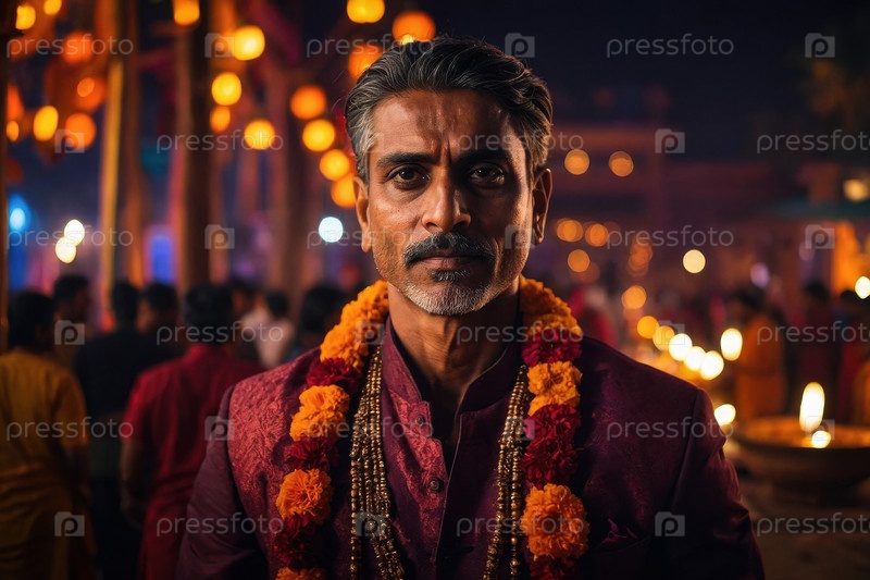 Старый индийский портрет человека в традиционной одежде на фоне фестиваля Дивали