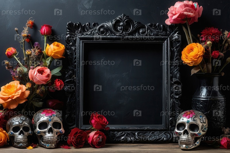 День мертвых На заднем плане реплика космического черепа цветка болотной свечи