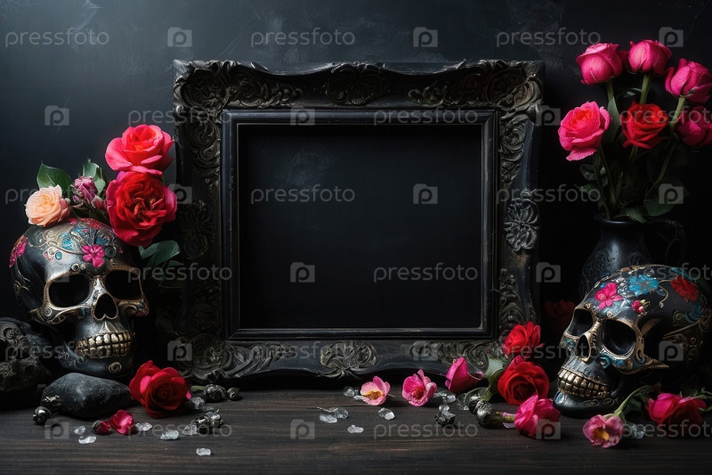День мертвых На заднем плане реплика космического черепа цветка болотной свечи