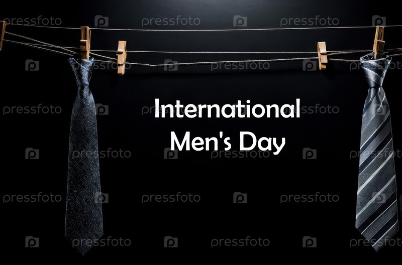 AI Generative Postcard Card World International Men's Day Галстук Висящий на черном фоне