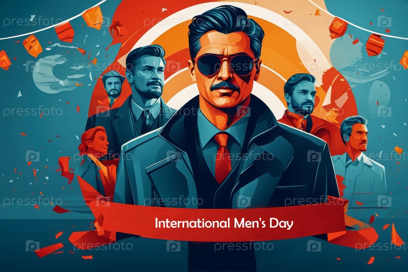 AI Generative Postcard World International Men's Day разные молодые парни на синем фоне