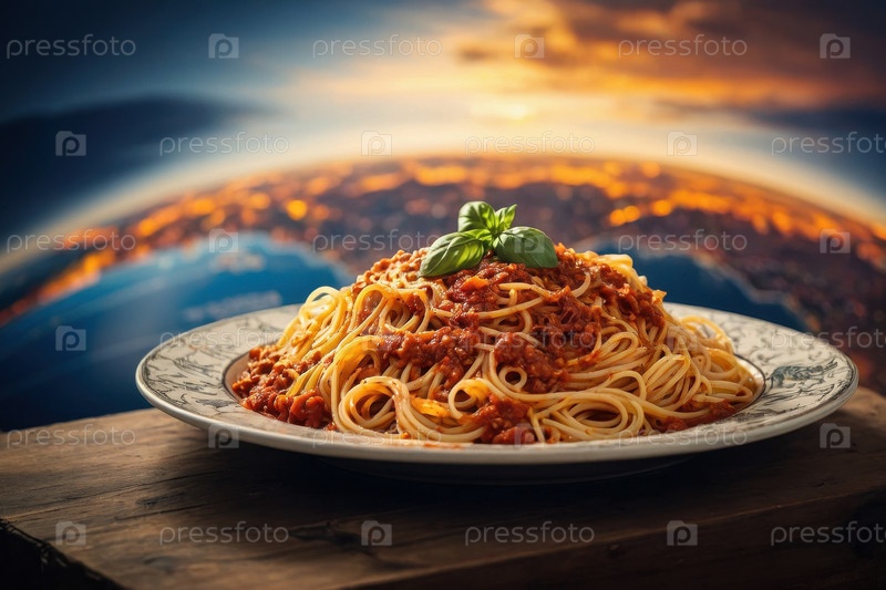 Отварные итальянские макароны на карте, открытка Всемирного дня продовольствия AI Generative