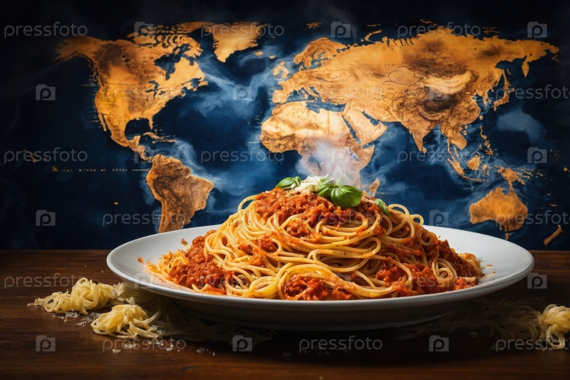 ИИ генеративные вареные итальянские макароны на карте, карта Всемирного дня продовольствия