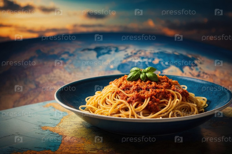 ИИ генеративные вареные итальянские макароны на карте, карта Всемирного дня продовольствия