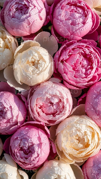 Нежные бутоны пионки в розовых каплях, фоновое изображение