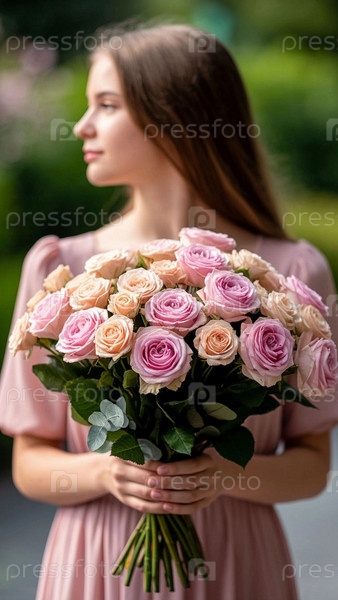 Девушка с букетом роз