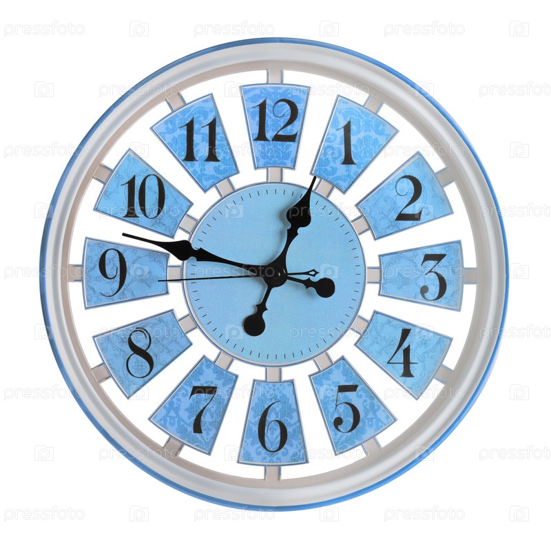 Круглые настенные часы с вырезами на циферблатах, изолированные на белом фоне
